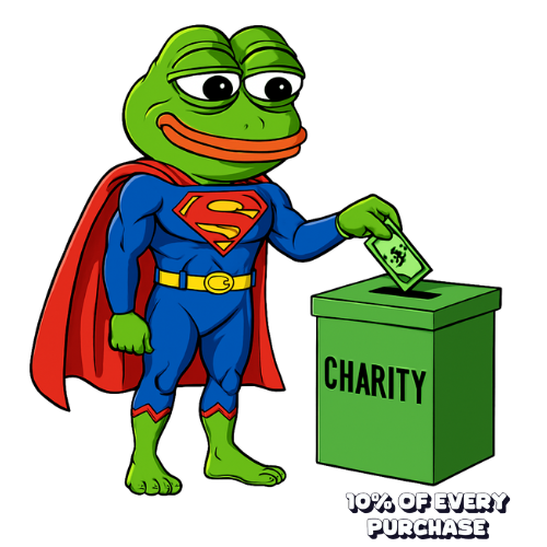 SUPER PEPE the first meme coin with a charitable purpose by making a charitable donation of 10% of each purchase.